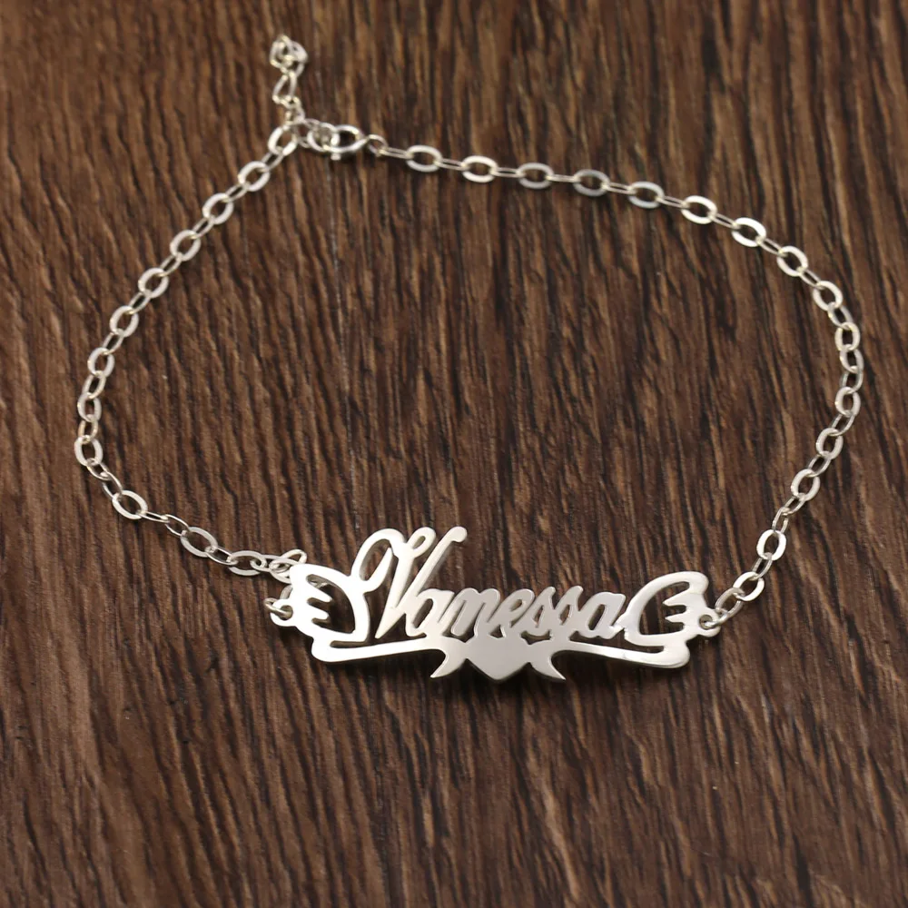 Product Name: Pulsera De Tobillo Con Nombre Personalizado Para Mujer, Brazalete Con Nombre Personalizado En Forma De Corazón, 925