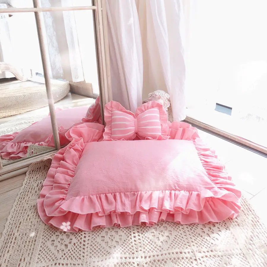 Product Name: Cama De Princesa Para Mascotas, Bonita Cama De Encaje Con Almohada En 6 Colores, 3 Tamaños, Cubierta Lavable Extraíble Para Gatos Y Perros